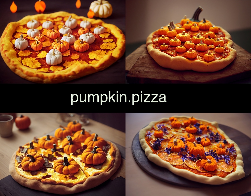 Set of 4 high resolution (6000 × 4000) pumpkin pizza wallpapers designed to be used on a computer screen.